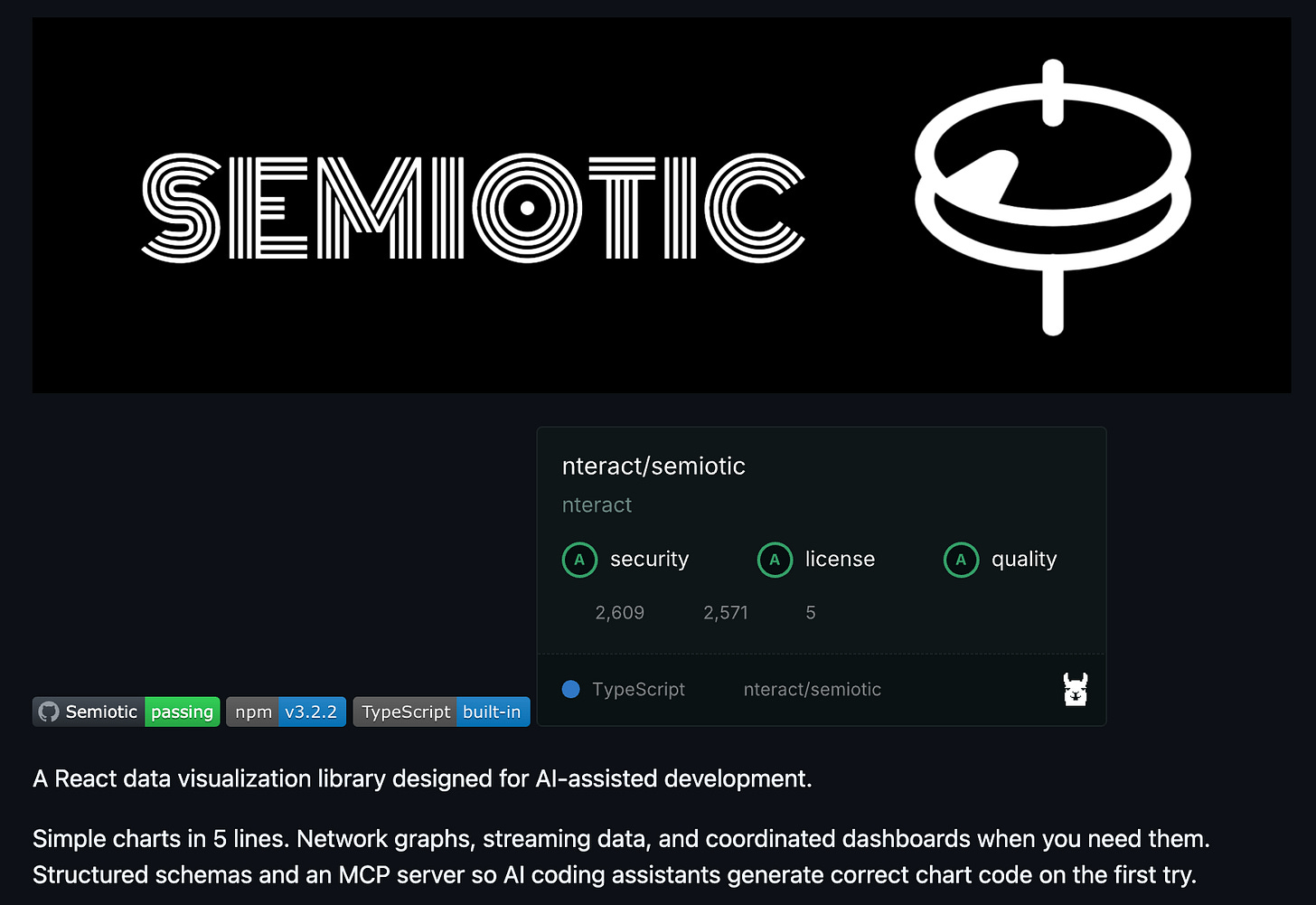 This week we are featuring Semiotic. It is a React library for building data visualizations in web apps. It comes with schemas and an MCP server, so AI coding assistants can generate correct chart code on the first try. Check the GitHub repo for more details.