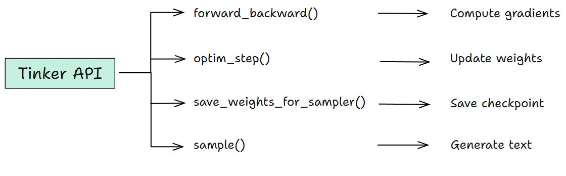 Tinker is the core training API. It runs the training on managed infrastructure.
