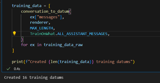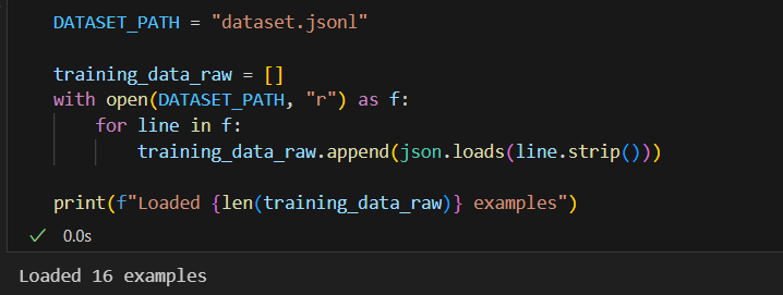 print(f"Loaded {len(training_data_raw)} examples")Step 10: Convert the data to training format