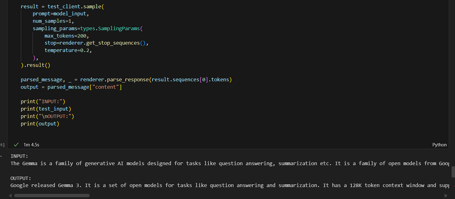 Finally, test the finetuned model using Tinker’s fourth function- sample().