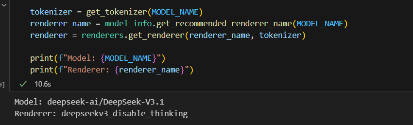 MODEL_NAME = “deepseek-ai/DeepSeek-V3.1”This is the base model we are going to fine-tune. The model's name must match one of the available models returned by the Tinker API.