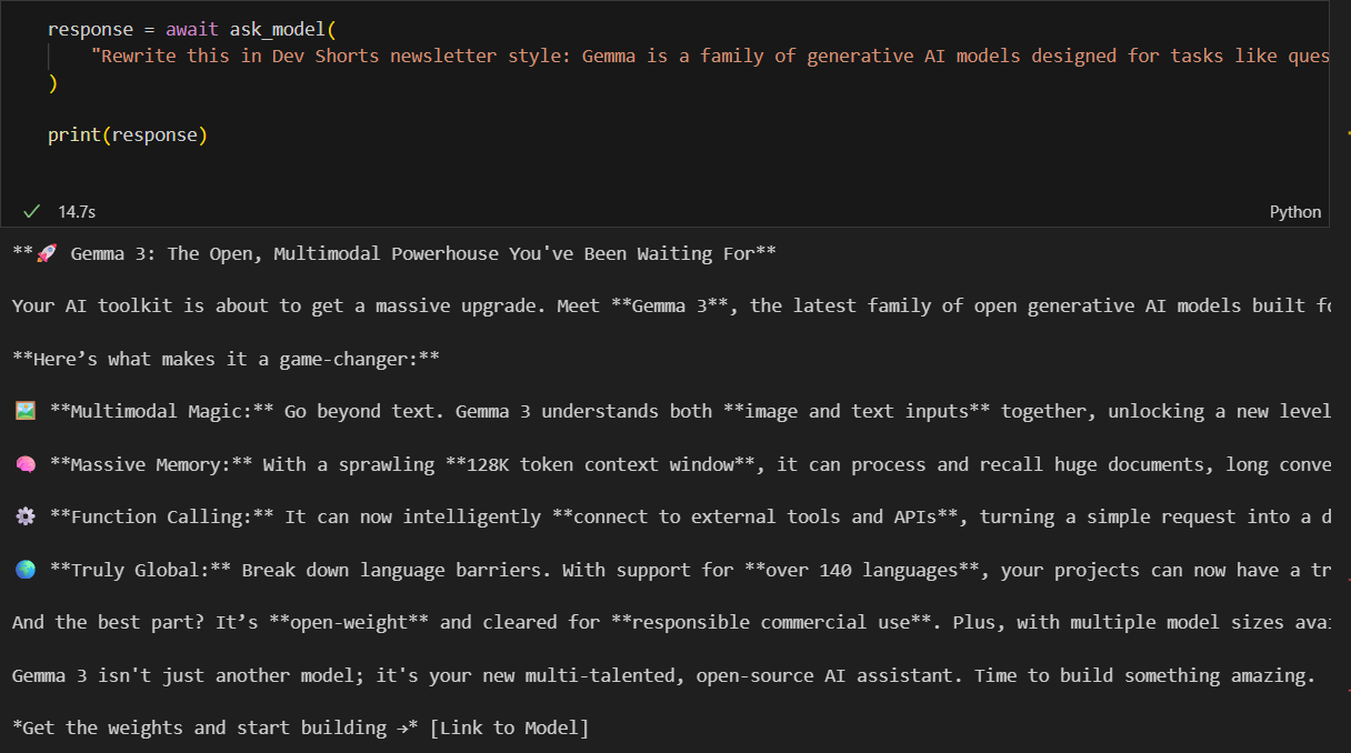 "The Gemma is a family of generative AI models designed for tasks like question answering, summarization etc. It is a family of open models from Google. Gemma recently crossed 100 million downloads and has a growing community with tens of thousands of model variants created by developers. Google has now introduced Gemma 3, a new set of lightweight open models built on the same research used for Gemini 2.0. These models are designed to run efficiently on devices like phones, laptops, and workstations. Gemma 3 is available in multiple sizes including 1B, 4B, 12B, and 27B. Gemma 3 supports text and image reasoning, a 128k token context window, function calling, and structured outputs. It also offers support for more than 140 languages and includes official quantized versions to improve performance while reducing compute requirements."