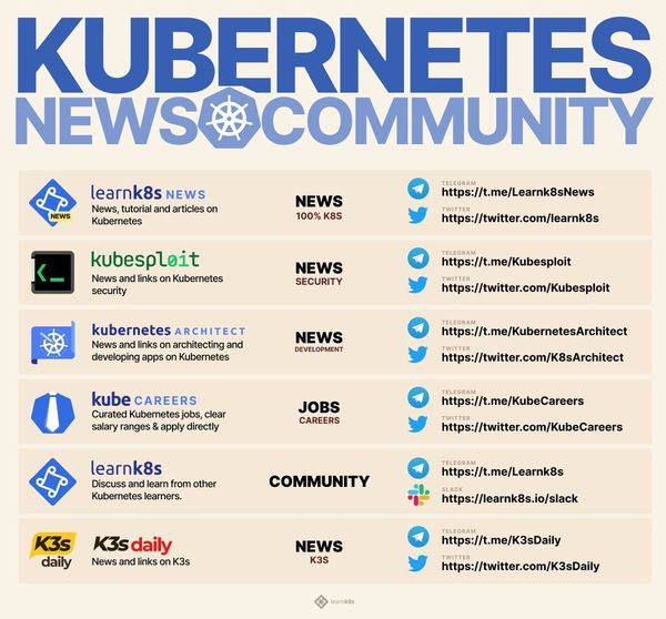 If you are a k8s fan and always looking out for things happening in the community. Learnk8s has made this image which would help you keep updated with news & events from k8s.
