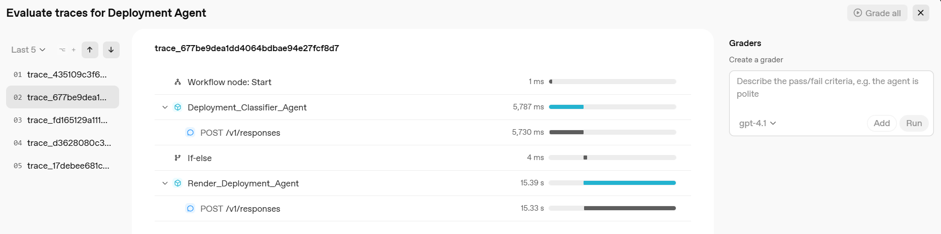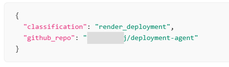 Here is a sample output from the Deployment Classifier Agent when the user says “deploy this github repo in render”.